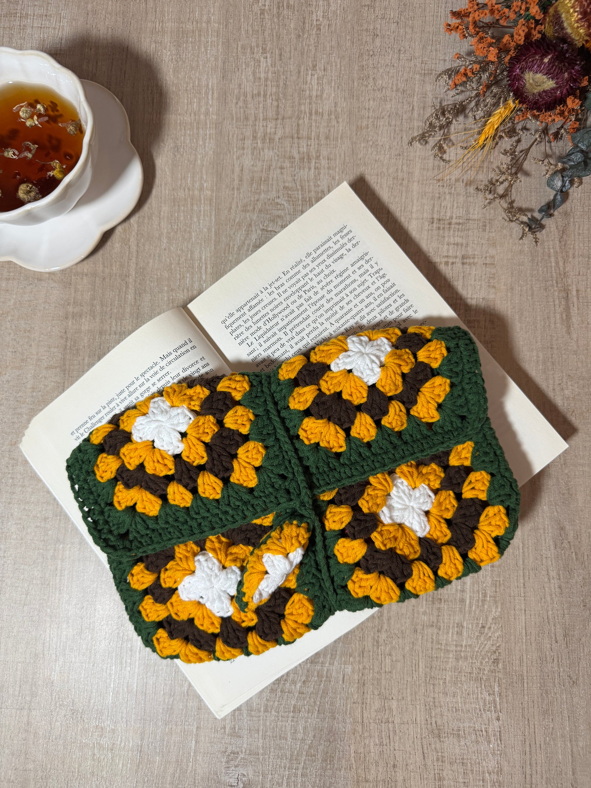 Un écrin doux et vintage pour accompagner vos moments de lecture. Ce protège-livre crocheté à la main avec de la laine de coton protège vos livres et peut aussi servir de pochette pour accessoires. Idéal pour les romans, carnets, livres religieux et essentiels du quotidien.